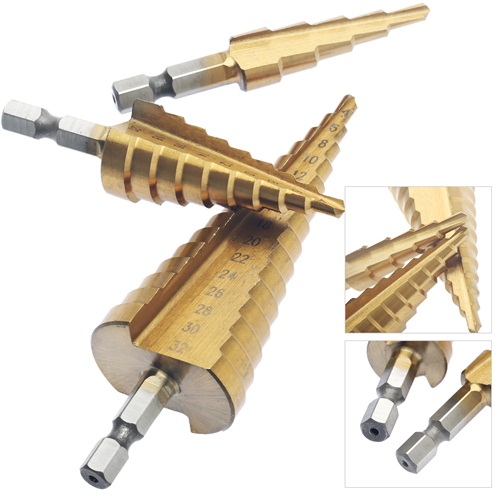 dophee 3Pcs HSS Titanium Steel Step Drill Bits Set Hole Cutter Craft Tool 4-12/20/32mm
